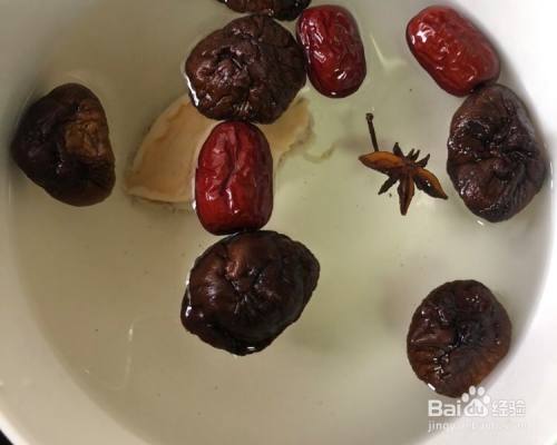 将香菇提前用水泡开 ,红枣、 鲍鱼、 茴香等洗干净然后备用,具体如下图