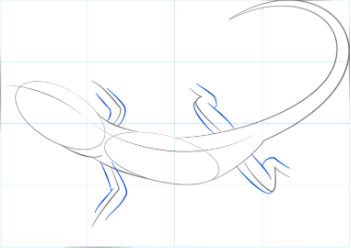 描绘蜥蜴轮廓,试图改变线的厚度和黑色。添加更多细节、石头和地面。清除所有准则。