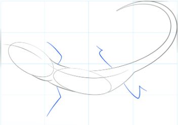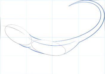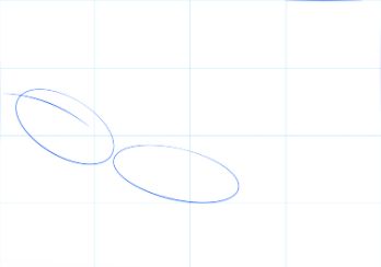 绘制两个椭圆形,这将有助于定义其头部和身体的位置。画一条线,作为头部的中心。