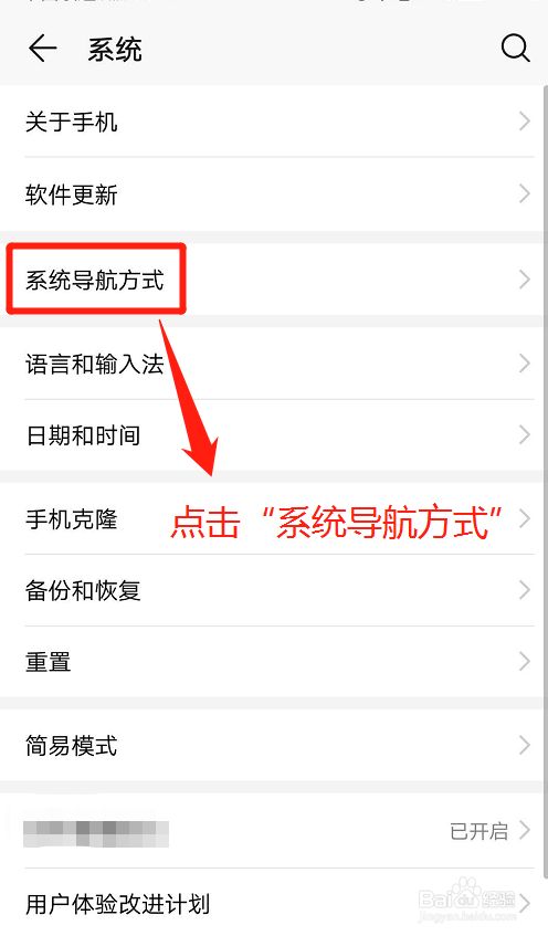 在“ 系统”窗口中,找到“系统导航方式”选项并点击它。