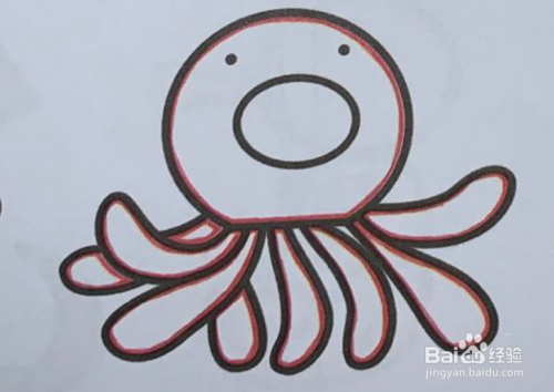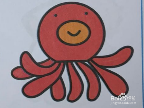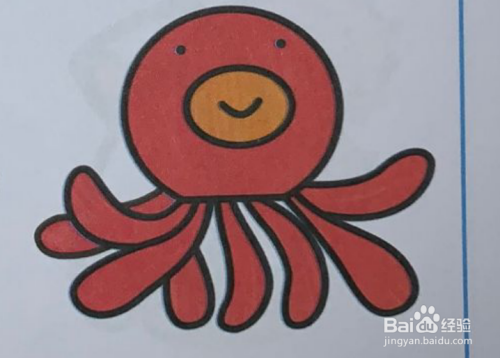 第五步,给章鱼涂上颜色即可完成简笔画。