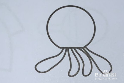 第二步,画出章鱼的爪子,就像是叶子向下伸展出来。