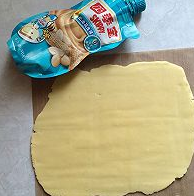 把面团揉好盖上保鲜膜,放入冰箱冷冻半个小时,把冻硬的面团取出,用擀面杖擀开。