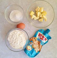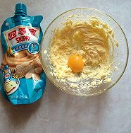 将软化好的黄油加入糖粉,放在打蛋盆里,用电动打蛋器将黄油和糖粉融合后加入鸡蛋,鸡蛋只要蛋黄用电动打蛋器打发到黄油体积变大蓬松后停止打发。