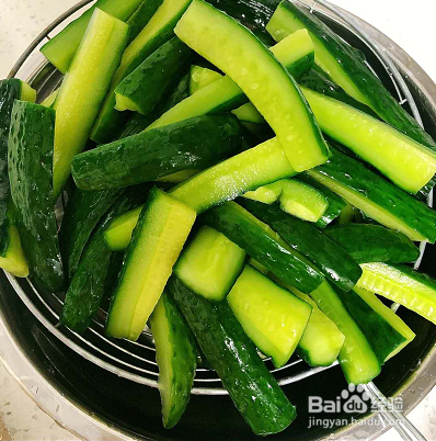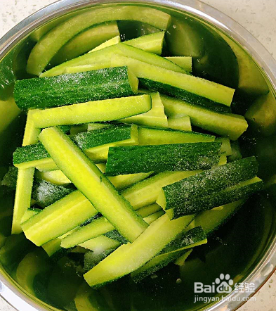 淹好的黄瓜用清水过一下,控干水分,避免太咸