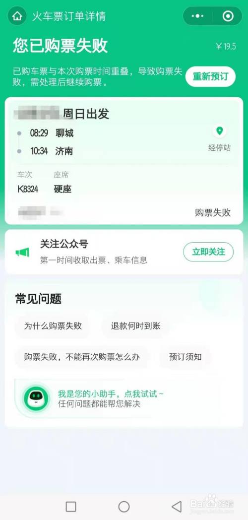 我们可以用自己的账号给自己买同一车次的车票,相当于重复购票。如果系统提示有冲突,会显示已经购买的火车票信息。