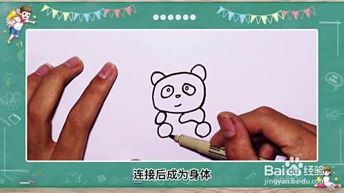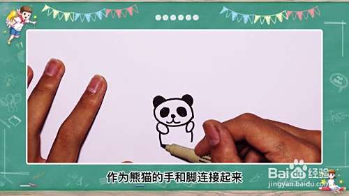 然后在脑袋下方画出四个小圆作为熊猫的手和脚,连接起来。