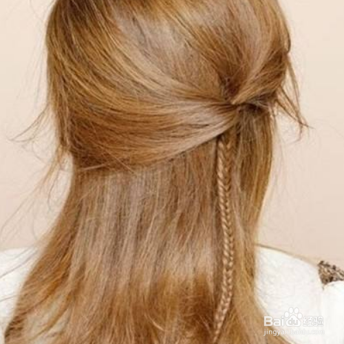 之后再讲头发分成三部分,编成简单的三股麻花辫,并稍微将辫子扯送一点。