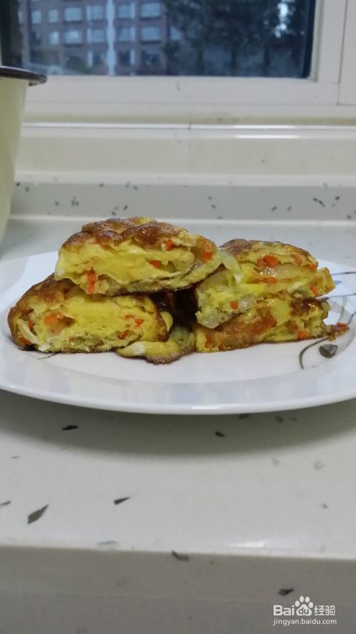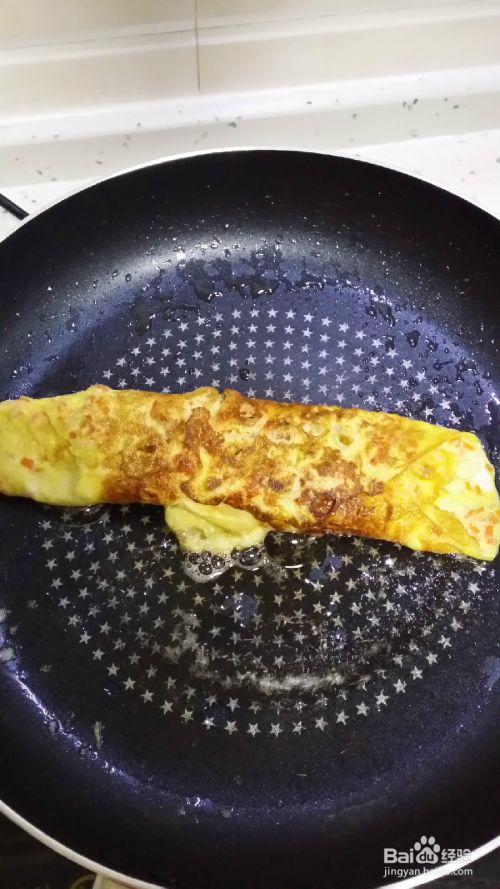 待蛋液定型后,将蛋饼从下向上卷起,卷成一个蛋卷。