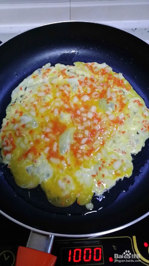 锅中放入油,待油温升高后,放入搅好的蛋液,先不要翻动,将电磁炉转成小火。