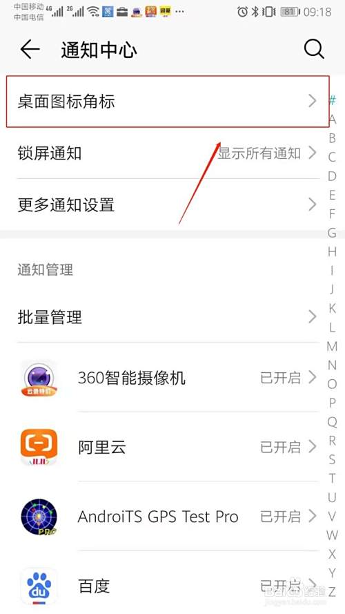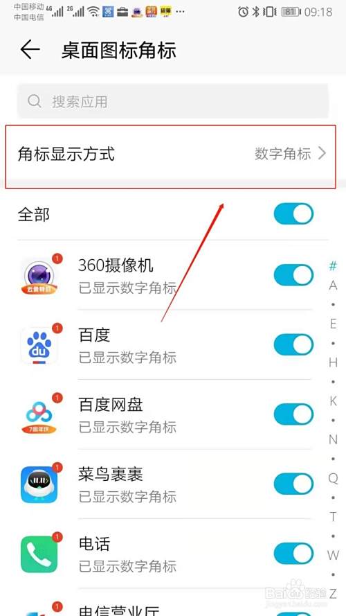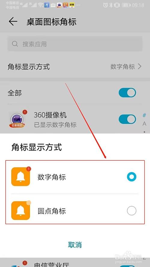 进入后,点击角标显示方式;在弹出的界面中,选择圆点或是数字模式;