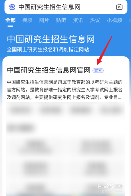 搜索中国研究生招生信息网后,点击进入官网。