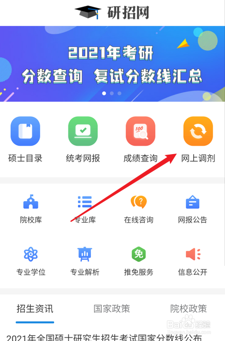 然后在官网右侧点击网上调剂。