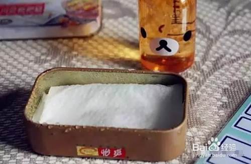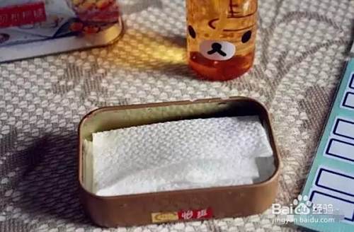 把洗净的苹果种子放到纸巾上,再放入盒中。