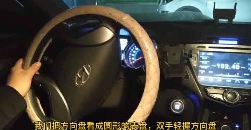 1我们把方向盘看成圆圆的表盘,双手轻握方向盘。