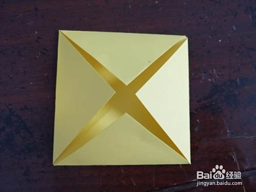 把四个角向内折,如图一。再把彩纸翻到背面,如图二。