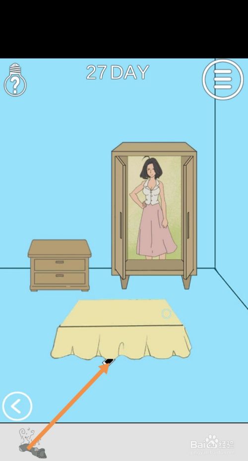 在右边的房间里,阿静臭袜子拖动到手机的位置,然后点击手机就过关了。