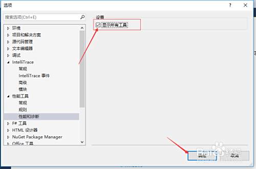 勾选上 显示所有工具 选项之后,需要点击 确定,对当前设置做保存。