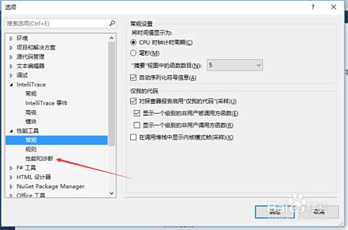 会进入到了 选项 界面中,点击左侧中的 性能和诊断 菜单选项