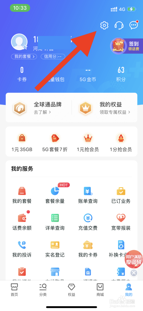 中国移动客户端如何关闭弹窗广告通知,进入中国移动,点击我的,找到设置