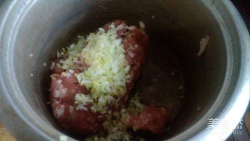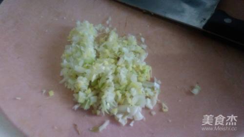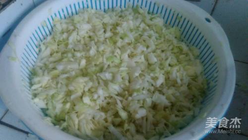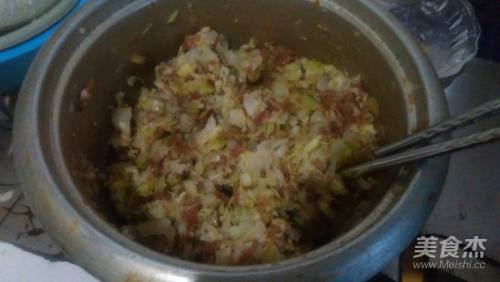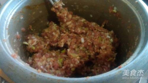 6加入大头菜,混匀,加盐,油,花椒粉,葱,姜最好和肉一起混合