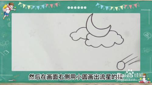 然后在画面右侧用小圆画出流星的核,后面画几道线作为流星的尾巴。