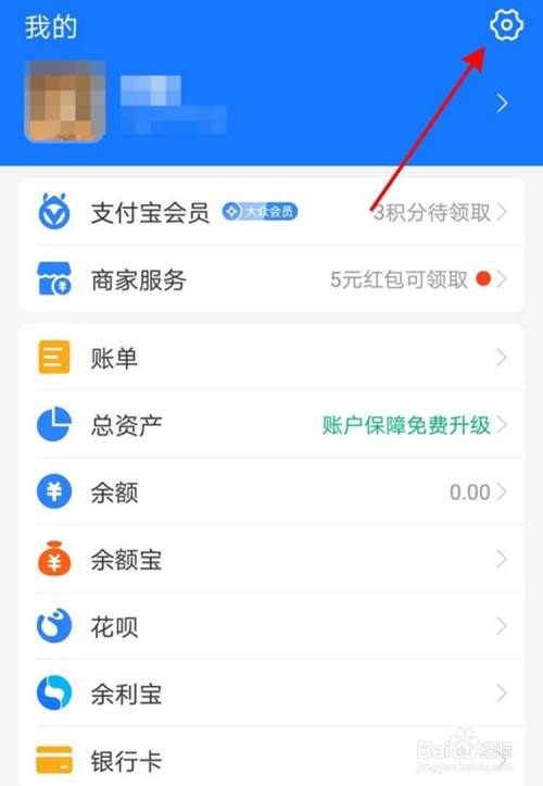 登陆支付宝,点击【我的】,点击右上角【设置】图标。