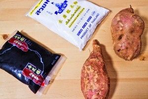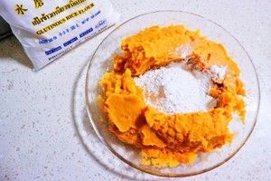 准备所需材料:糯米粉、玫瑰豆沙,红薯?。