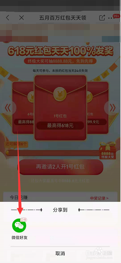 点击【去微信粘贴给好友】发送给好友助力即可开红包。