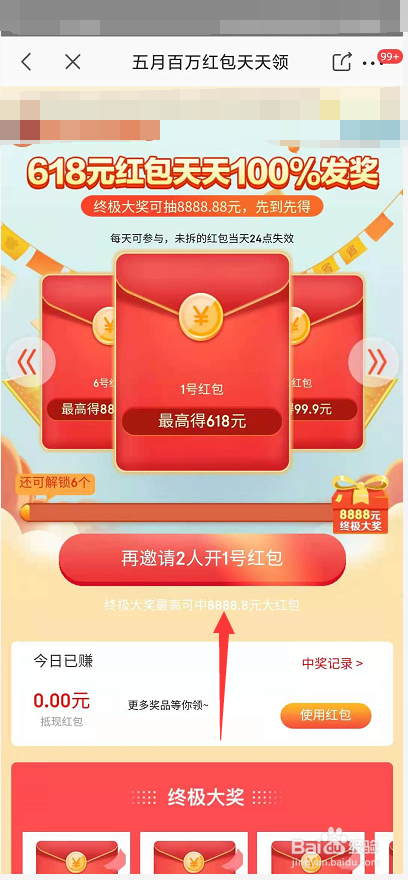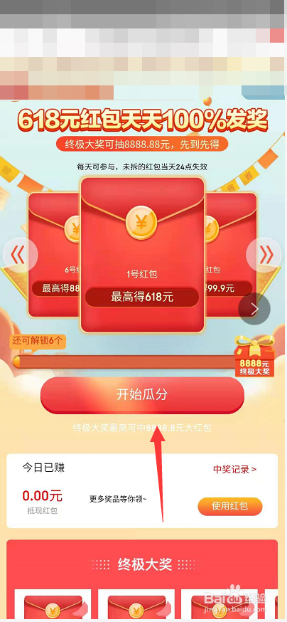 进入五月百万红包天天领页面,点击【开始瓜分】