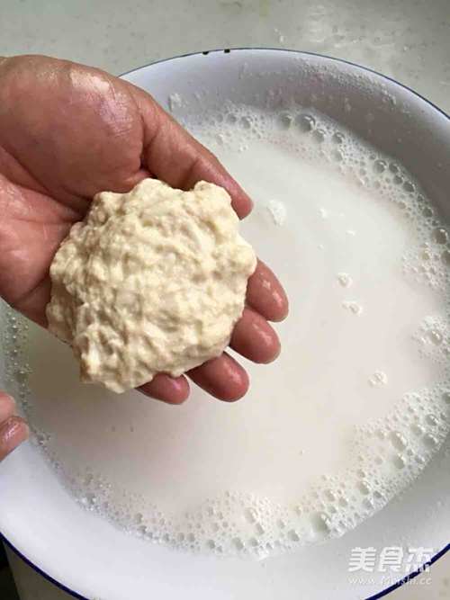 3准备一大盆清水,将面团放入,两手不停交换搓洗,最后清水变白,面团逐渐成为一小块面筋