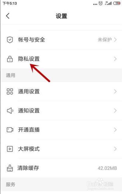 然后再点击设置界面“隐私设置”。