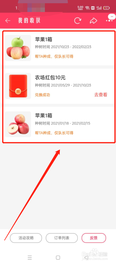点击右上角的收获。