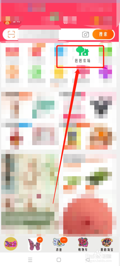 打开手机颂鉴淘宝,在首页点击芭芭农场。