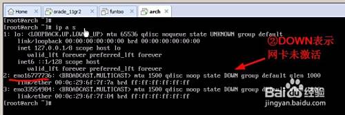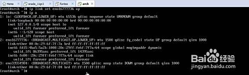 开始打开虚拟机吧,各种LINUX/UNIX/SOLARIS/BSD均可。本文以ARCH LINUX为例子,其他各种发行版命令基本相同,如REDHAT,CENTOS,UBUNTU,GENTOO等。配置网络以IP命令为例子。配置前从普通用户切换到root用户。输入ip a 或者 ip a s 命令查看当前可用网卡名字和网卡状态,DOWN表示网卡未激活。