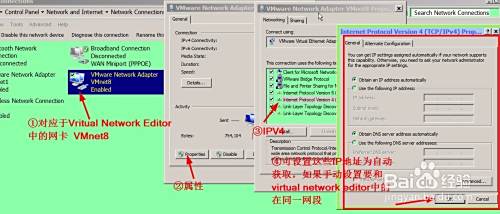 确保主机(HOST OS,提供虚拟服务的系统)中的网卡处在状态正常,并且配置和Virtual network editor中保持一致或设为自动获取类型。