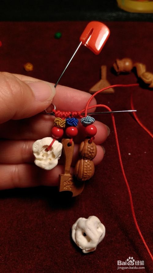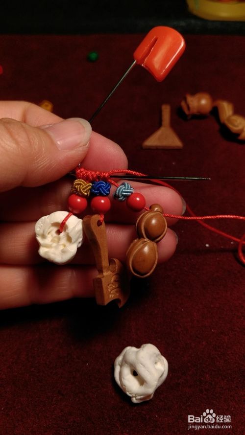 连续编2-3个金刚结后,重复前面步骤穿第二组配饰。
