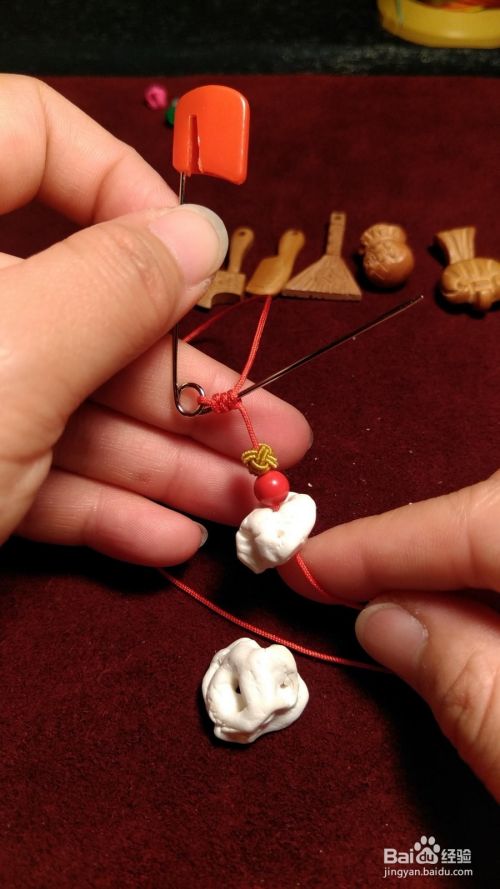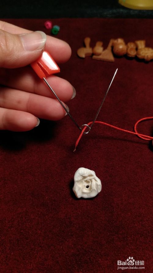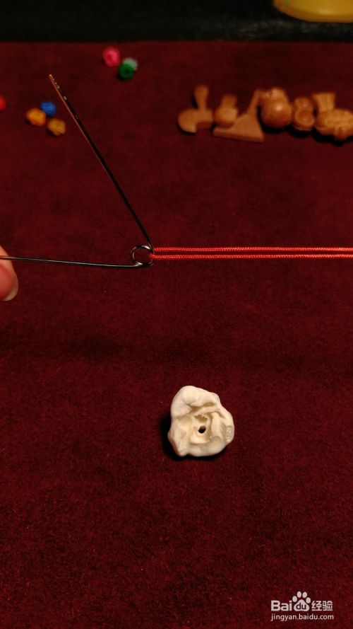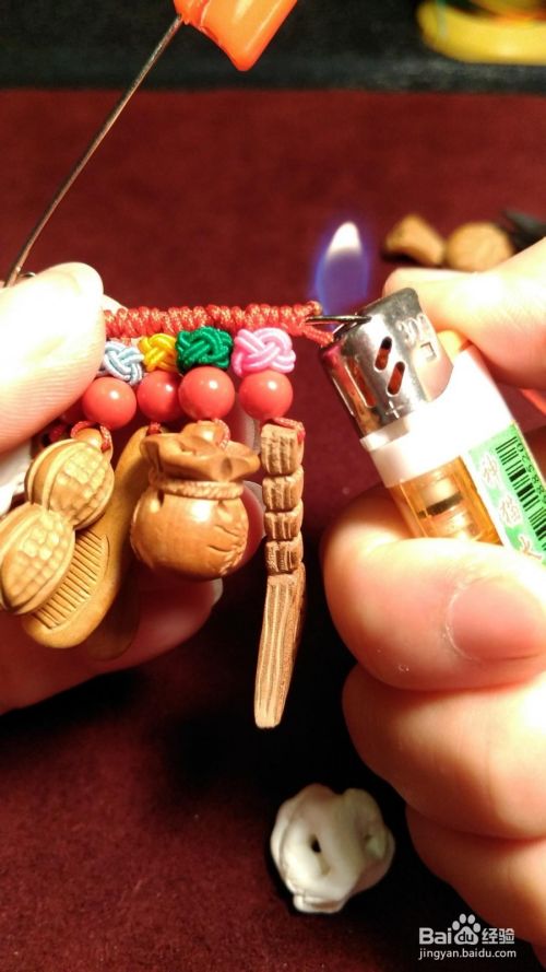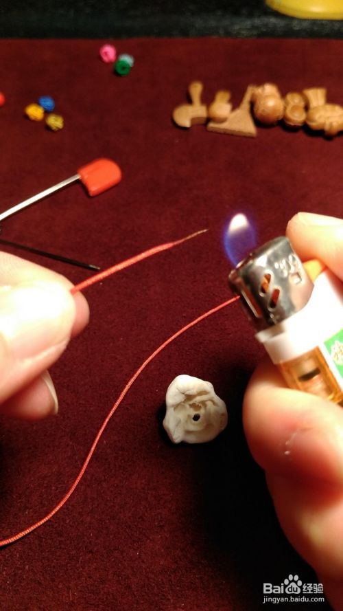 用打火机将玉线的两端轻燎,手撵成针状(注意不要烫伤