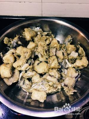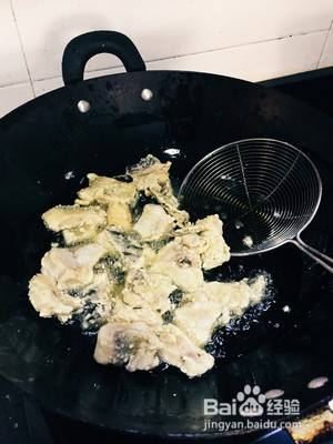 菜籽油烧热(其他油也可以)七八分热油。放入裹了浆的鱼块炸至金黄。