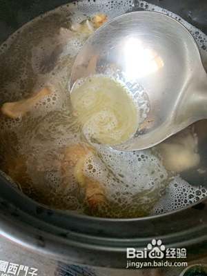 鸭子倒入砂锅中倒入适量热水,撇去浮油