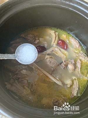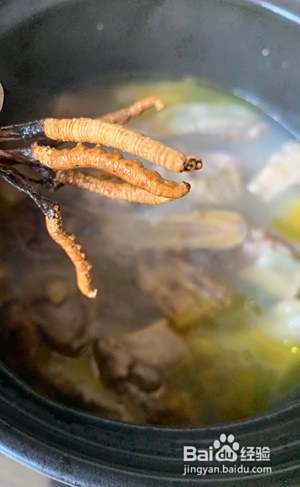鸭子炖至1小时左右放入红枣和虫草,盖上盖子再炖