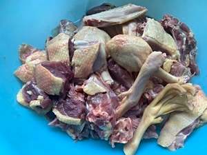 鸭子放入锅中加入适量清水,倒入适量黄酒焯去血水。焯好的鸭子用温水洗净