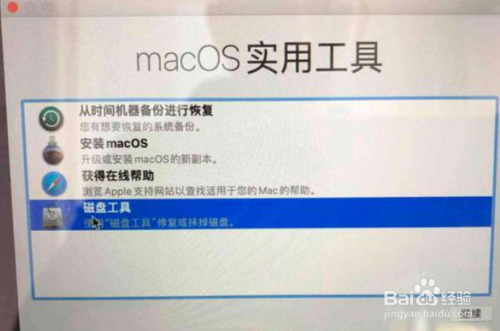 进入Mac系统安装界面,在“macOS 实用工具”处选择“磁盘工具”点击继续,打开磁盘工具;