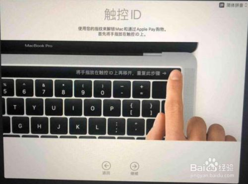 触控ID,点继续录入指纹,多次放置指纹后录入成功;