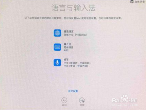 进入“语言与输入法”选择界面,默认的就行,点击继续;