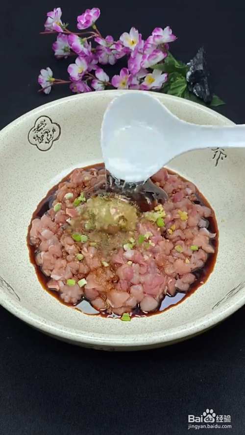 加入蒜末 葱花 盐 鸡精 胡椒粉 十三香 生抽 蚝油 清水搅拌均匀