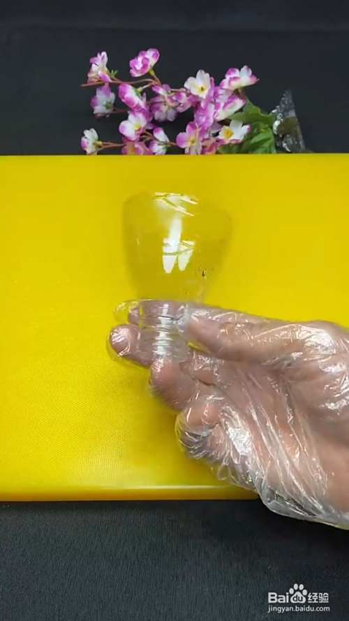 提前泡好的肠衣尾部打结套在塑料瓶口上;