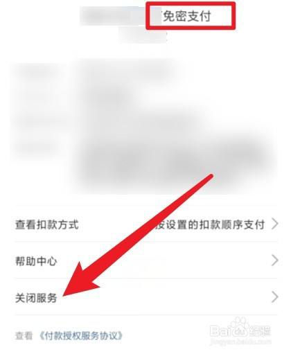 最后点击一个服务,点击关闭服务,可以关闭免密支付。