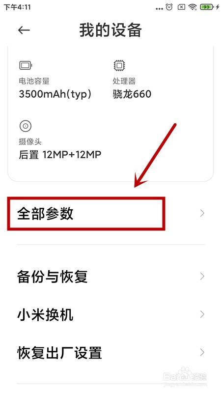 如果要了解更详细的手机参数,可以上滑屏幕,找到并单击【全部参数】选项。