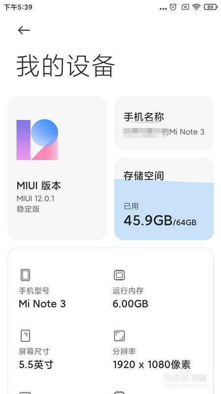 在【我的设备】页面,我们可以查看到手机名称、系统版本、手机型号、存储等信息。
